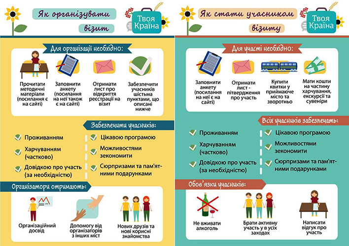 Там можно найти регистрационную форму и заполнить её. В этой же форме и список ближайших визитов. В анкете ты рассказываешь о себе и своей деятельности, но главным критерием остаётся твоя мотивация. Далее организаторы отбирают участников и за 10 дней до даты визита оповещают счастливчиков. Потом ты покупаешь билет, и в добрый путь. Не боись, тебя там встретят прямо с поезда, поселят и выльют на тебя канистру эмоций, а потом зажгут. Также ты можешь присоединиться, как организатор, заполнив форму, либо связавшись с людьми, которые организовывают визит в твоём городе. Зачастую, это фришники («Фундація регіональних ініціатив» - https://vk.com/friua), но всякое бывает.