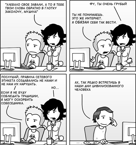 19. Ну, и общие правила общения никто не отменял. Такие истины, как не употребляй неуместный мат и не оскорбляй людей, перешли и в киберпространство.