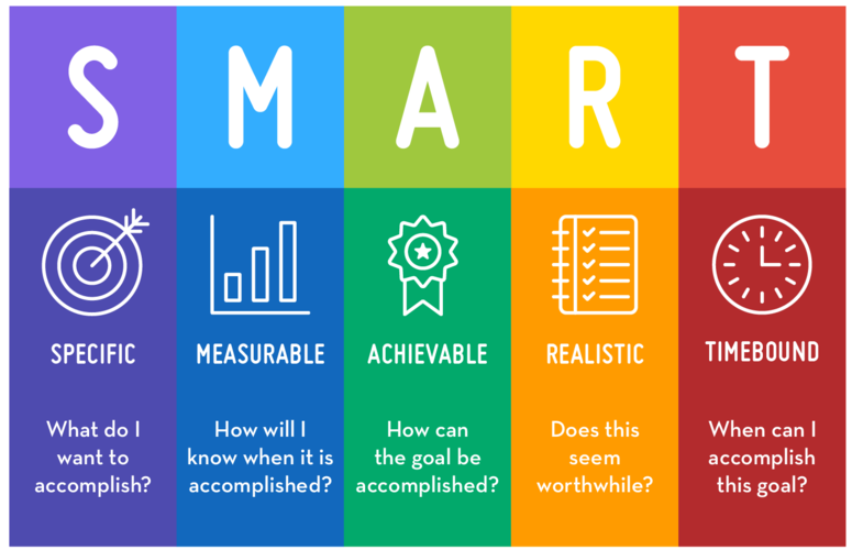 Доволі часто люди формулюють свої цілі аж надто абстрактно, що тягне за собою зрозумілі наслідки. Тож я раджу користуватися методикою SMART, яка пропонує встановити мету за такими критеріями: specific (конкретність — яким саме має бути результат?), measurable (вимірність — як оцінити свої успіхи?), achievable (досяжність — чи реально це втілити?), relevant (важливість — навіщо це потрібно?), time bound (обмеженість в часі — які є дедлайни?).
