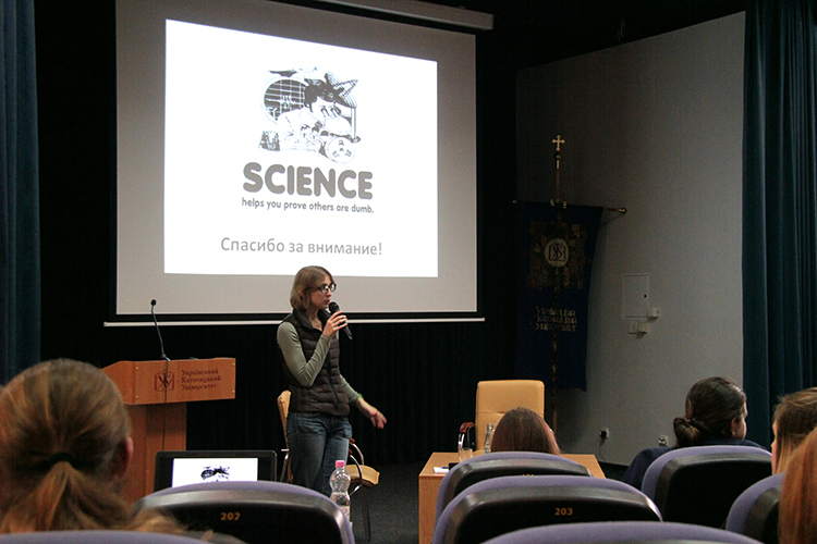 Ася Казанцева вміло зацікавила науковою журналістикою навіть тих, хто не має до науки ніякого відношення. А мене, студентку технічного вузу, тим паче. Наукова журналістика в Україні почала набирати популярність останні декілька років, але більшість журналістів не якісно пишуть про науку, тому що є цілковитими гуманітаріями. Тому журналістам с технічною освітою саме час ловити хвилю. Свій майстер клас Ася завершила словами: «Наука вам потрібна для того, щоб показати, що всі інші дурні».