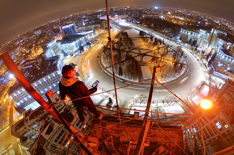 Да, риск есть, но я свожу его к минимуму, потому что не делаю того, в чем не уверенный наверняка и всегда пытаюсь контролировать ситуацию. В независимости от того боишься ты высоты, или нет, нужно помнить, что ты на крыше, а не в облаках летаешь.