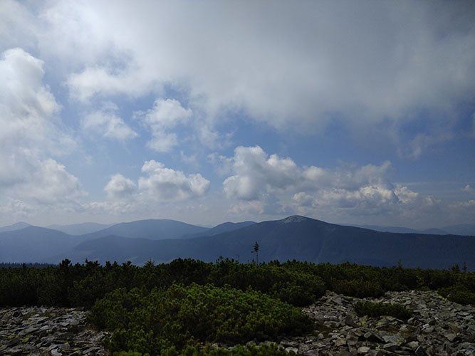 На пятый день мы героически, через пот и кровь, взобрались на гору Малая Сивуля, а после и на Большую Сивулю (1836 м).