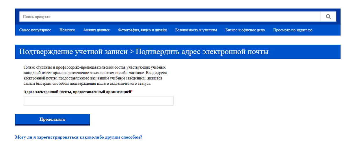 Первый шаг – регистрация по ссылке https://estore.onthehub.com/WebStore/Account/VerifyEmailDomain.aspx