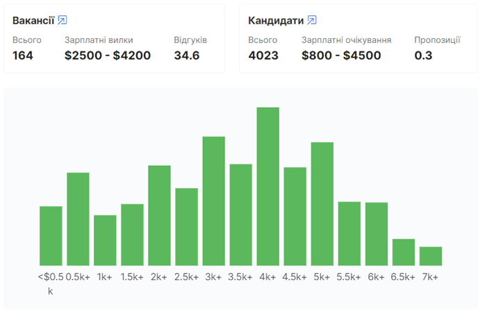 Рейтинги використання та індекс вподобання це доволі цікаві показники, але вони, безумовно, не є основною мотивацією розробника-початківця, чи не так? Пропоную поглянути на ще одну неймовірно важливу складову – зарплату. За аналітикою Djinni середня вилка зарплат для .Net розробника сягає 2500-4200$. Але і це не є верхівкою амбіцій програмістів, адже для досвідчених розробників є вакансії й на 7000+$.