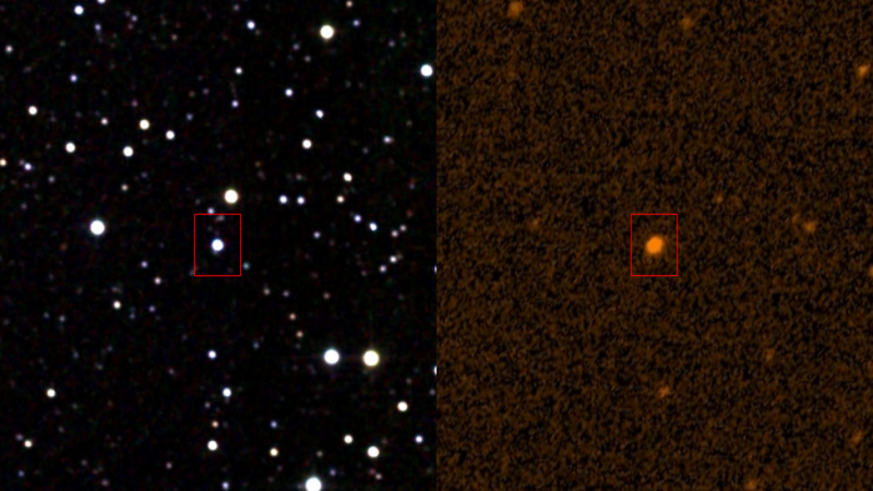 Зоря Таббі в інфрачервоному (зліва) і ультрафіолетовому (справа) діапазоні