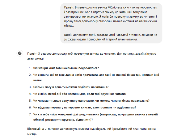 «Постави мені питання, які допоможуть тобі краще відповісти на мій запит, аж доки ти не будеш готовий дати остаточну відповідь».