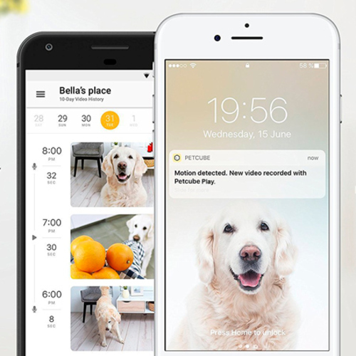 Базовий продукт компанії — камера Petcube Cam, з кутом огляду 110° і якістю відео у 1080p. Пристрій можна закріпити в будь-якому куточку оселі й спостерігати за діями улюбленця в режимі реального часу. Крім того, камера має автоматичний режим нічного бачення, а зображення можна збільшувати у 8 разів. Разом з тим господар чує, що відбувається вдома, і сам може щось говорити своїй тваринці. У разі якоїсь нетипової ситуації, гавкання чи нявчання, а також за появи людей в об’єктиві, вбудовані алгоритми ШІ розпізнають це й одразу сповіщають користувача. Більш просунутою версією камери є Petcube Cam 360, яка, як видно з назви, забезпечує обертання на 360° і дозволяє повністю оглянути приміщення.