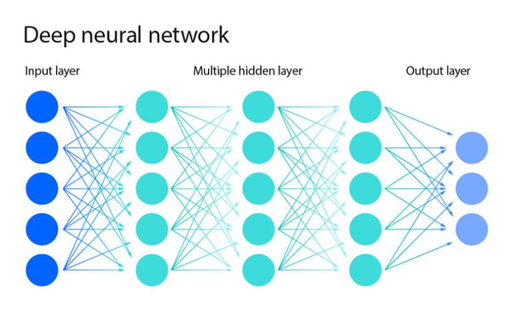 Нейронна мережа складається з кількох шарів, кожен має певну кількість вузлів, що імітують нейрони. Вузли звʼязані з наступним шаром — і ці звʼязки мають «вагу», яка визначає, наскільки сильний взаємозвʼязок. Це дозволяє імітувати звʼязок між нейронами, який відповідає формуванню навичок, та таким чином дозволяє програмі навчатися — звʼязки між вузлами, що приносять правильний результат, зміцнюються, і вага їх збільшується. Для того, щоби передати інформацію з одного шару на інший, треба помножити матрицю результатів його вузлів на матрицю ваг звʼязків з наступним шаром.