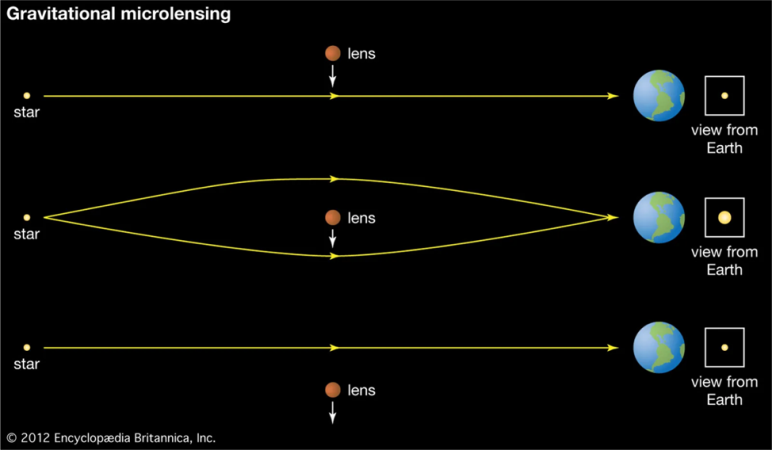 Коли світло проходить біля тіла з великою гравітацією, воно змінює траєкторію, наче пройшло через лінзу. Планети також можуть слугувати такими «лінзами». І якщо у певній області простору виникає і зникає така лінза, то можна судити, що там пройшов масивний об’єкт.