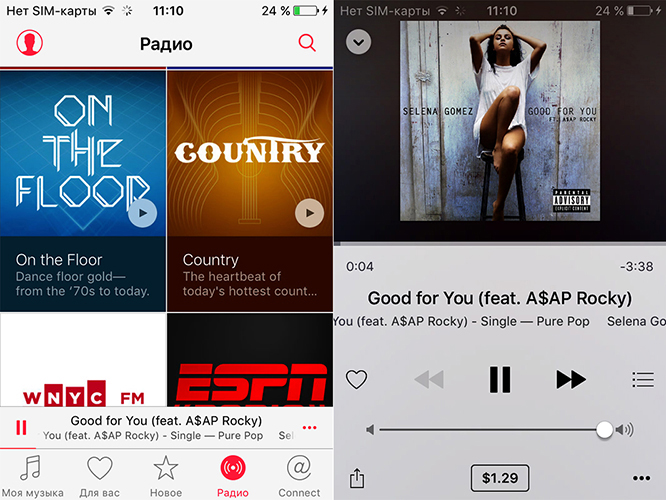 Музыка также слегка видоизменилась. Перерисовали системные панели и вид проигрывания песни. Обложка занимает половину экрана, а под ней кнопки для управления композицией.