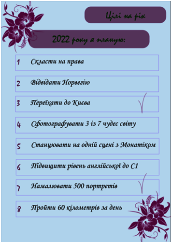 Доречі, стосовно прагнень. Новий Рік — чудова можливість втілити мрії у життя і ще чудовіша нагода подарувати стильний трекер для цілей на рік. До того ж приємно розуміти, що кожного разу, коли ваші близькі будуть ставити "галочку" поряд з своїми вже здійсненними бажаннями, вони будуть з усмішкою згадувати вас. Можна замовити індивідуальний чек-лист у дизайнерів, розробити власний макет або завантажити готовий продукт з інтернету, звернувши увагу на оформлення відповідно до інтересів людини. Спеціально для читачів I-NURE ми підготували макет чек-листу, який ви зможете знайти у нашому телеграм каналі. Трекер на рік може навіть бути одним з сотні чек-листів тематичного блокноту-мотиватора.