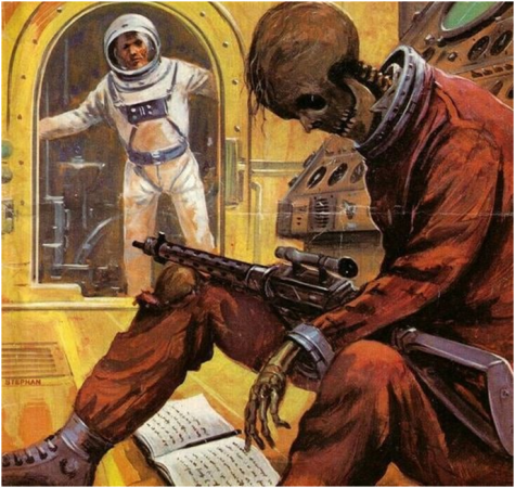 Корабель спав, але його машини — ні. Коли механічні очі на носу побачили маленьку холодну зірку Регіс, він зупинив свої фотонні двигуни. Автомати почали перемовлятися між собою, готуючи команду до пробудження з глибокого сну, а корабель — до посадки на негостинну, пустельну планету Регіс ІІІ.