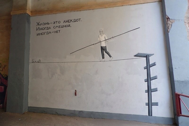 За последние несколько лет он подарил городу огромное количество граффити, наполненных философским смыслом. Его работы очень тепло восприняла молодежь, которая не упускает возможности сделать фото на фоне замысловатых граффити.