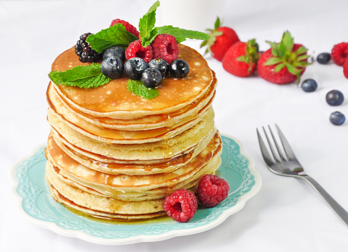 Если у вас хорошая сковорода с антипригарным покрытием, то смело можно жарить панкейки без масла, в противном случае стоит хотя бы слегка смазать поверхность сковородки маслом. Размер панкейков вы можете регулировать сами. Обычно, достаточно вылить на сковороду небольшой половник теста.