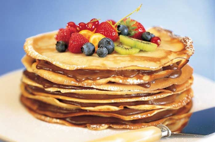 Сгущенка или мед – проще не придумаешь! Доступно и вкусно. Если хочется чего-то более «элитного», то можно намазать на блины шоколадную пасту.
