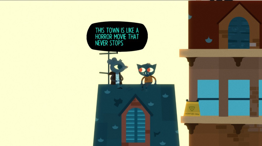 Вот и Мэй вернулась в родной Поссум-Спрингс вовсе не отведать маминого пирога и вновь вернуться к учёбе. На остановке её никто не встречает. Подумаешь, дочь вернулась из колледжа, всего лишь. И уже на пути в родную обитель они видит в заросших аллеях первые ноты мелодии своего города. Мелодии угасания. Ах да, в местном мире сплошные антропоморфные животные, и наша героиня Мэй – кошка. Что не мешает Night in the Woods рассказать одну из самых человечных историй.