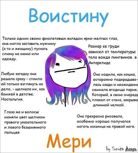 Часто администрация выставляет ограничения в создании собственного героя. Как пример, раса не должна быть всесильной (бог, ангел, демон). Так же возможны ограничения по характеру, способностям, силе. Должен получиться гармоничный образ. Из-за отсутствия должного внимания модераторов к этим аспектам при проверке анкет персонажа, появляются Мэри Сью. Такие персонажи неоднозначны. Если коротко описать Мэри Сью, то получиться уверенная в себе, страстная стесняшка с нереальной красотой и обаянием, что не оценили по достоинству в детстве (и, вообще, она была изгоем) , но теперь она сильна духом и плачет из за сломанного ногтя. К сожалению, она не блещет умом, но знает 2 мертвых языка и с десяток других, на которых может рассказать как она в уме умножает десятизначные числа.