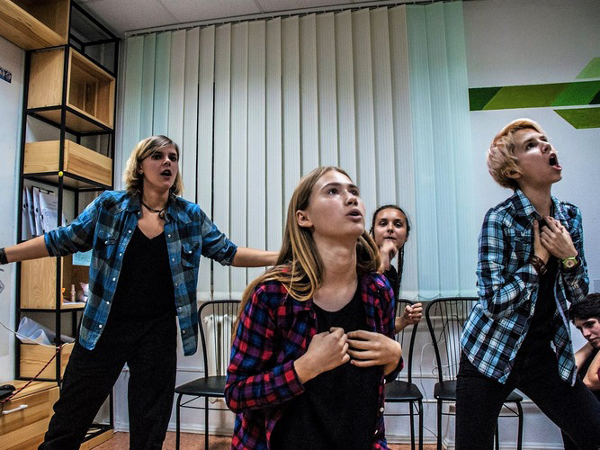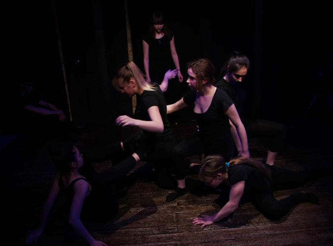 - "Вспышка”. Короткая форма. Актеры немного выходят вперед и становятся в произвольную «кучку». С помощью жестов, мимики и иногда голоса, выплескивают наружу нужные эмоции. Та энергия, что исходит от актеров, действительно похожа на вспышку.