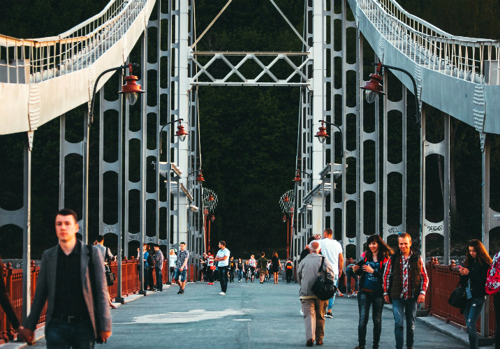 Якщо ви хочете подивитись на краєвид та зробити класні фотки, то йдіть одразу на Пішохідний міст, бо панорама з нього ще краща, бо немає дерев та скупчення людей, а сам міст виглядає дуже стильно та "по-європейськи". Увечері ще й вмикається підсвічування.