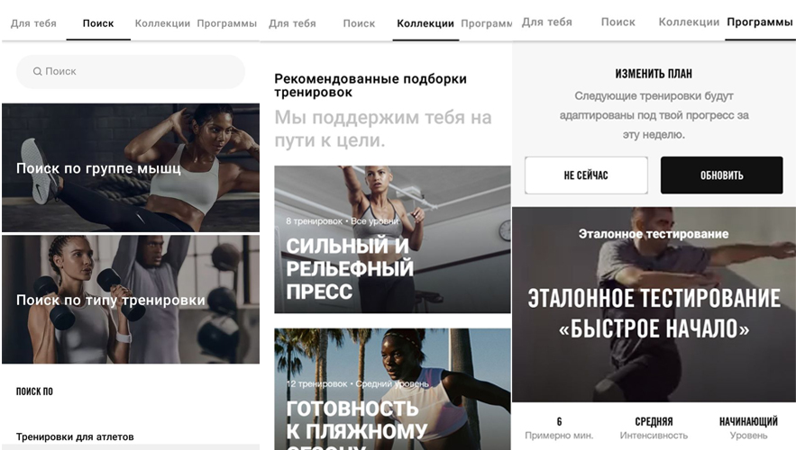 - Коллекция: в этом разделе тренировки сгруппированы в зависимости от ваших целей