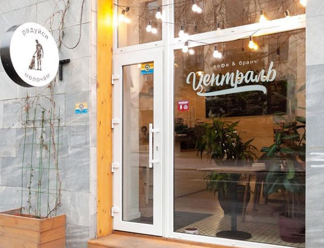 Первое, что видишь, когда подходишь к кофейне, так это надпись: «Радуйся мелочам» над входом, а когда заходишь внутрь, то видишь эту же надпись, только уже на полу. Она там совсем не зря, ведь Централь находится в самом сердце города - возле площади Свободы, и в постоянном движении очень легко не замечать мелочи, которые могут поднять настроение: первый увиденный одуванчик после зимы или первый глоток кофе утром.