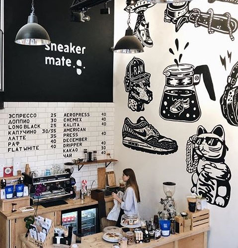 Все знают, что заглядывать в окна к другим – неправильно. Но только так можно найти это место, ведь здесь вы не увидите больших и ярких табличек, зазывающих зайти и выпить чашечку капучино. Но и пропустить кофейню сложно: проходя мимо сразу видишь ребят, которые варят кофе, людей с интересными книгами и компании, собравшиеся для обсуждения новостей, которые накопились за неделю. Играющий хип-хоп, рисунки на стенах и, конечно же, кофе не оставят вас равнодушными к этому месту.