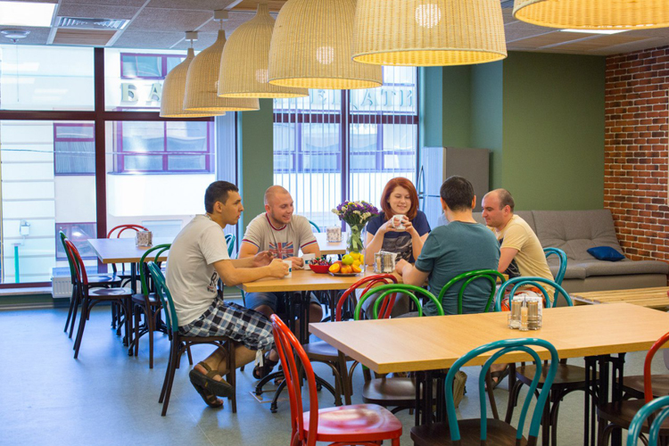 Конечно, комфортное рабочее место — это очень важно для каждого из нас. К тому же, мы любим вместе выпить кофе в свободную минутку, пообедать в тесной компании или выпить чаю с тортом перед важным собранием. Для этого на каждом этаже нашего офиса предусмотрены уютные комнаты отдыха — каждая со своим характером.