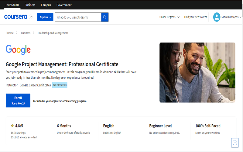 Для наших студентів безкоштовно доступно 6500 курсів. Тут ви знайдете й курси з економіки, і з бізнес-менеджменту, і ІТ, і мистецтво, а також математики та природничих наук. Крім того, можна отримати диплом певного рівня освіти, наприклад, Master of Business Admistration. Від Google зараз тривають різні курси: Project Management, Data Analytics, UX Design.