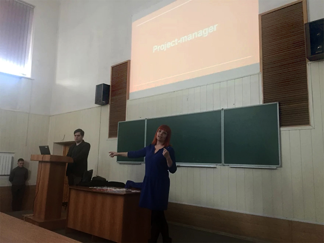 и обратил внимание, что навыки работы в коллективе и общительность облегчат жизнь developerа. В отличие от предыдущих ролей в IT, для этой главным критерием компетентности является именно умение писать код. У слушателей профессия вызвала огромный интерес, так что Дмитрию еще долго пришлось отвечать на вопросы студентов.