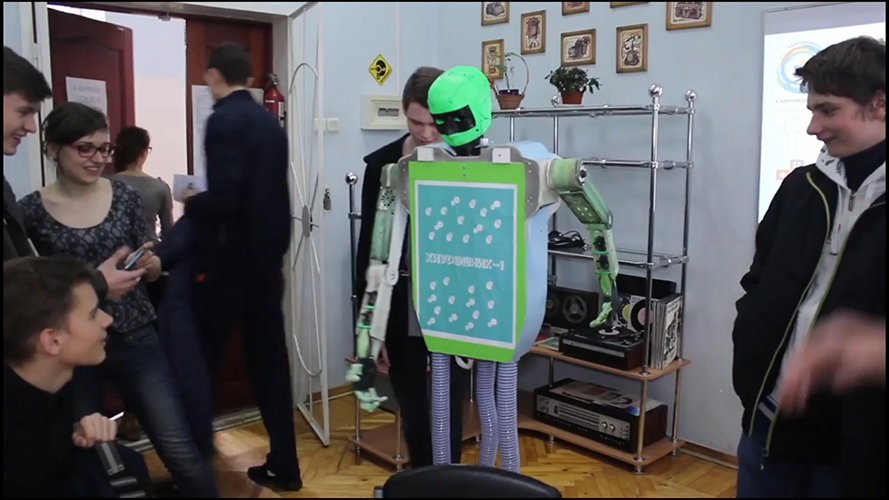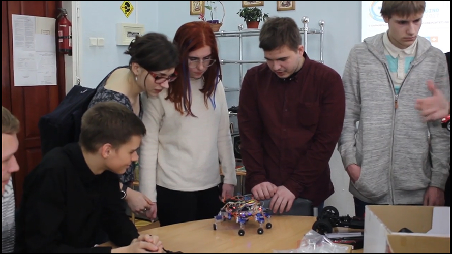 Мероприятие началось с видео презентации. В ней нам показали то, что сумели собрать из плат ардуино умельцы со всего мира. Тут вам и самые банальные роботы на колёсах, и робот, играющий в игры на телефоне, и промышленный измеритель ресурса работы переключателей, и шагоходы, и бог знает что ещё.
