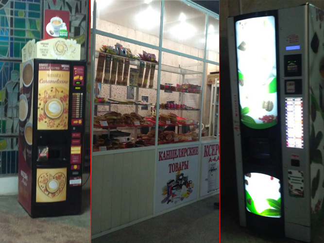 А теперь переходим в корпус «И». На входе нас ждет два автомата и небольшой магазин с невысокими ценами на кофе (но его выбор небольшой).