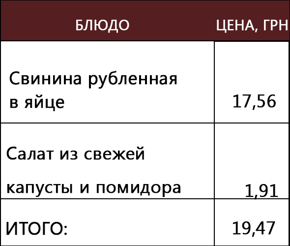 В этом варианте меню, можно отметить богатый витамином «С» чай с лимоном и сахаром. Пицца настолько сытная, что для некоторых может заменить полноценный обед. А про вкус жареных пирожков с картошкой в ХНУРЭ ходят легенды.