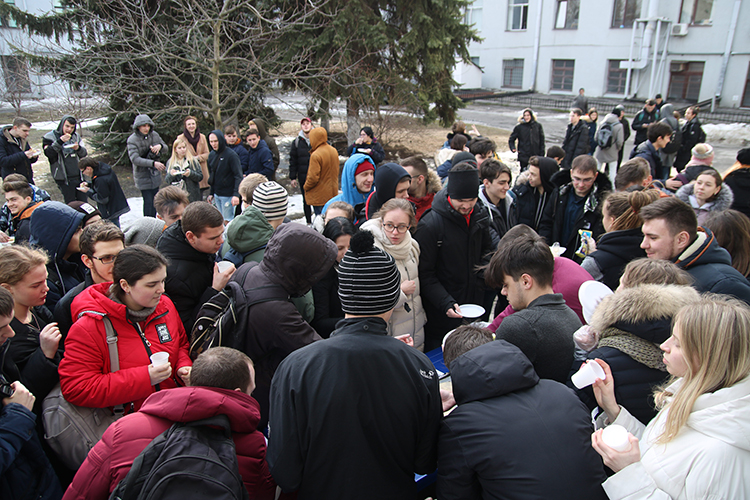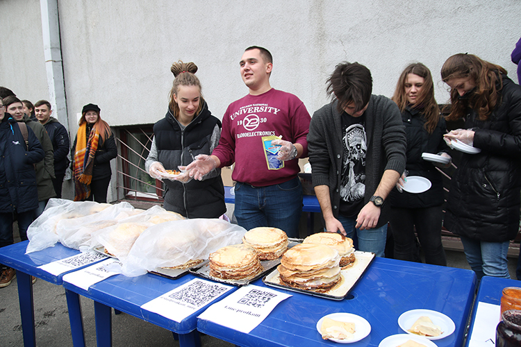 5 березня, на другий день масляного тижня, в університеті радіоелектроніки влаштували міні-гуляння. У внутрішньому дворику представники студентського профкому розташували столи та безкоштовно роздавали млинці зі згущеним молоком та варенням.
